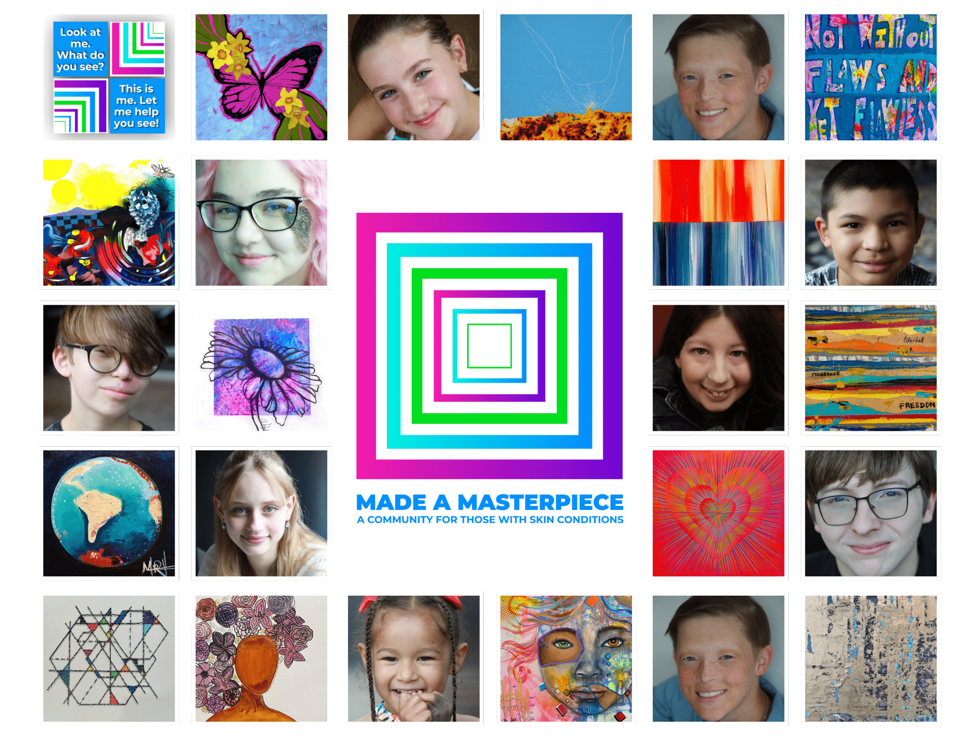 About the artist: At Made A Masterpiece, they are working to change the conversation around skin disease so we can all be seen as the masterpieces we were created to be. To learn more and see where they are going from here, please visit https://www.madeamasterpiece.org/exhibition.