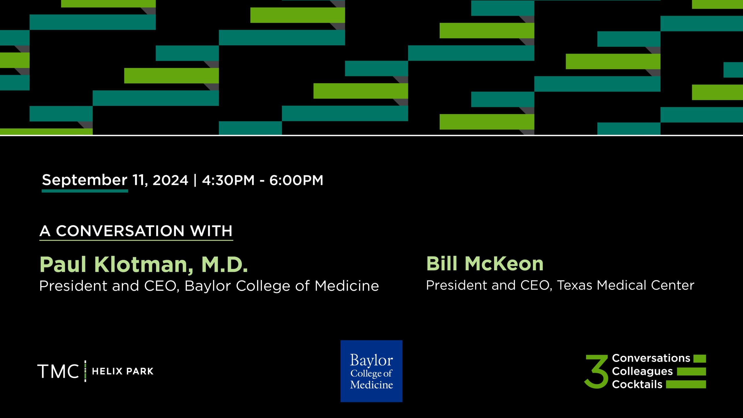 5 p.m. | President and CEO of TMC Bill McKeon Begins a Conversation with CEO and President Paul Klotman, M.D.